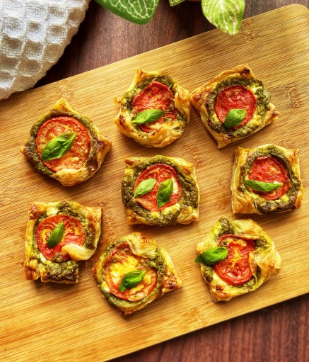 These pesto cottage cheese puff pastry galettes are a delicious addition as an appetiser for brunch, lunch or even can be kid’s after school snack. It’s fresh, perfect bites and a fun finger food that can be quite addictive. Flaky puff pastry topped with delicious homemade pesto, freshly crushed cottage cheese and juicy heirloom tomatoes can never go wrong.