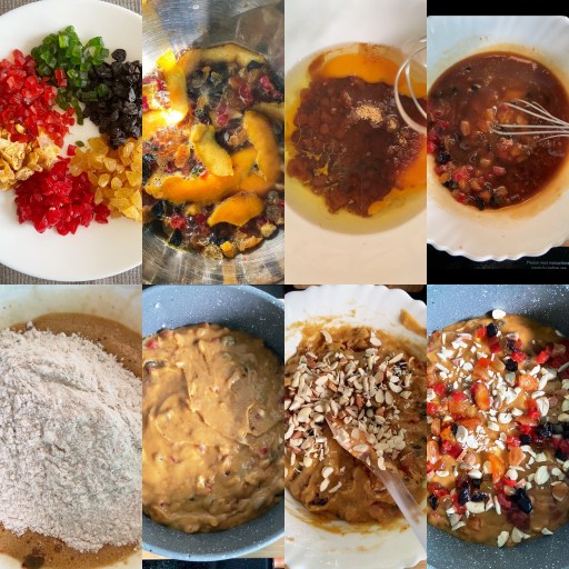 This’s not a traditional Christmas fruit cake which calls for soaking the candies and dry fruits in the alcohol for days and months and feeding the cake with rum or brandy for weeks ahead before being consumed. Of course the traditional fruit cake is delicious, however I’m not much of a fan of dense and overly moist cake. So this quick and easy flavourful fruity cake is for everyone like me who doesn’t like an intensely moist cake and loves enjoying the cake instantly without being overboard with all the preparations ahead of time.