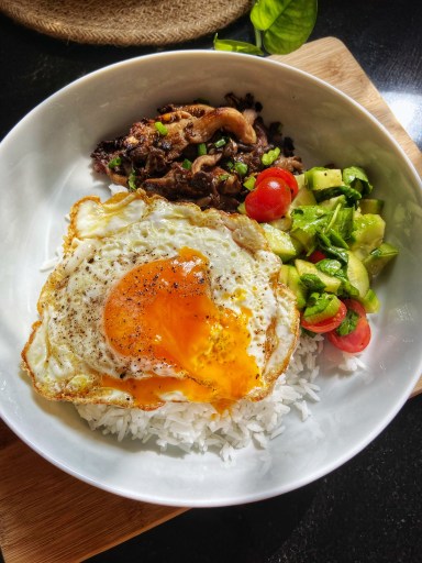 I had paired the Pan fried Oyster Mushroom with Rice, salad & a sunny side up which is a complete balanced meal.