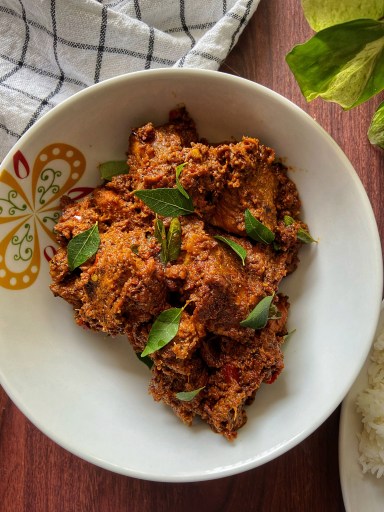 Mangalore Chicken Ghee Roast is a delectable Spicy Chicken recipe that’s aromatic and finger licking good. The goodness of Ghee (clarified butter) and the warm spices makes this unique dry roast chicken dish more appetising. Once you make it, there’s no turning back. You’ll definitely make it again and again for any occasion or for a family lunch or dinner.