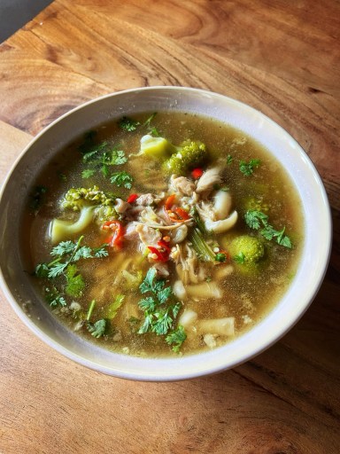 I’ve made this soup many times, and each time it feels like a ritual. Chopping fresh vegetables, simmering chicken, cooking the chicken and veggies, and finishing with a squeeze of lime and fresh coriander. It’s wholesome, easy, and full of goodness.