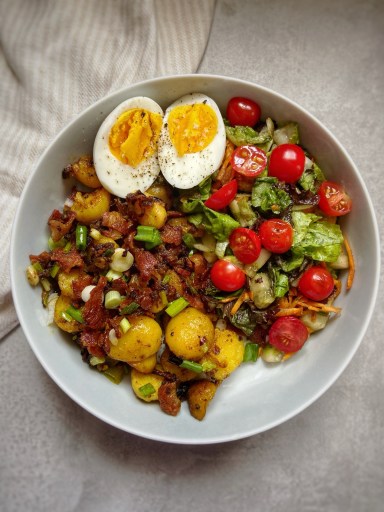 My family loves this potatoes with crispy bacon as a side dish with rice meal. I simply love it with a plate full of salad. And you can totally enjoy it guilt free.