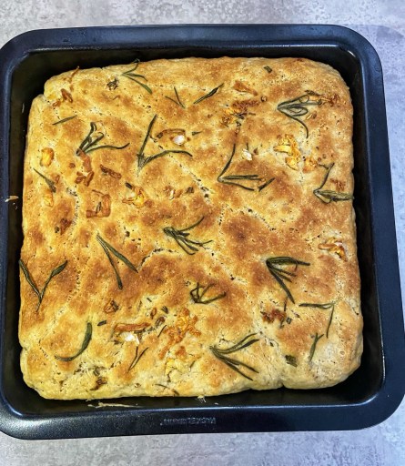 Notes: Focaccia stays soft for 2–3 days reheat in the oven or toaster for best texture.