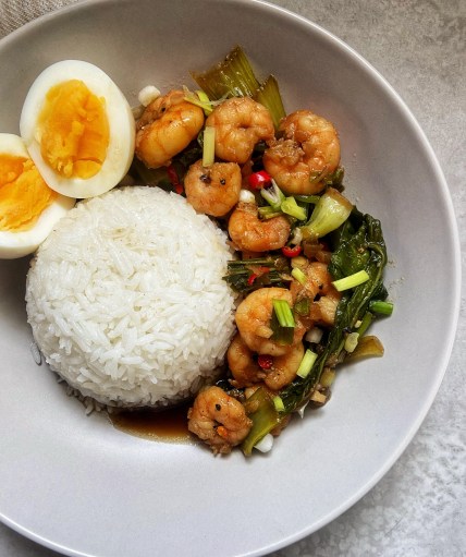 Bok choy, with its crunchy stems and tender leafy tops, pairs wonderfully with juicy prawns. It not only adds texture but also brings freshness and nutrition to the plate. If bok choy isn’t easily available, you can swap it with spinach, mustard greens, or even tender broccoli.