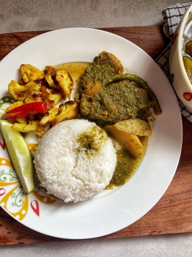 Some dishes don’t need heavy spices or elaborate techniques, they carry their beauty in simplicity. This Assamese style Fish curry cooked with mani muni is one of those quiet, soulful recipes that instantly takes me back to my childhood days.
